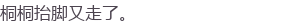 桐桐嗤的一声,摆脱她的纠缠,大踏步的离开了。